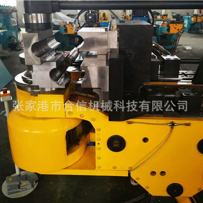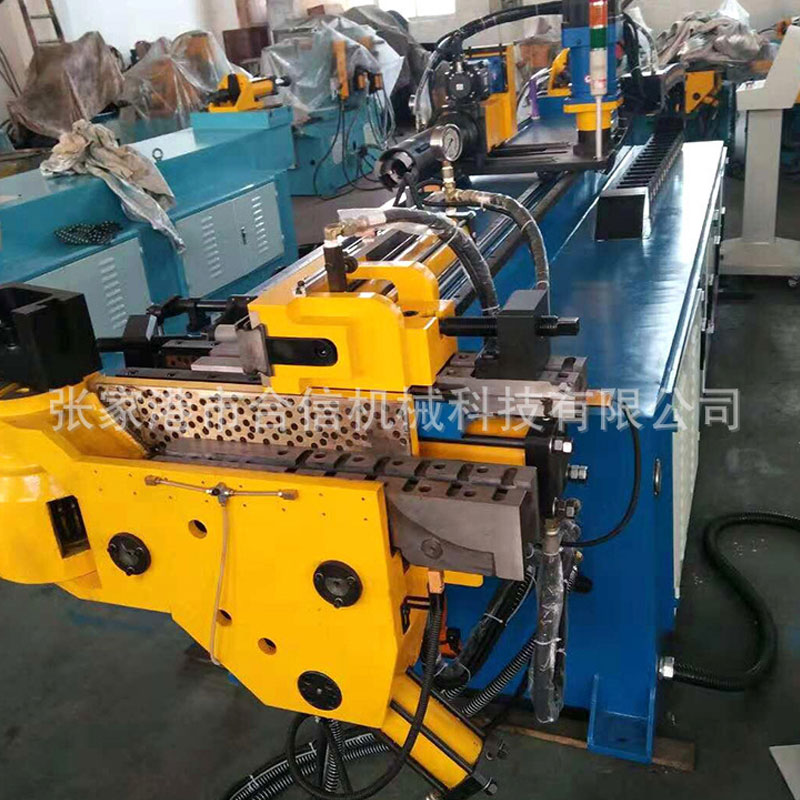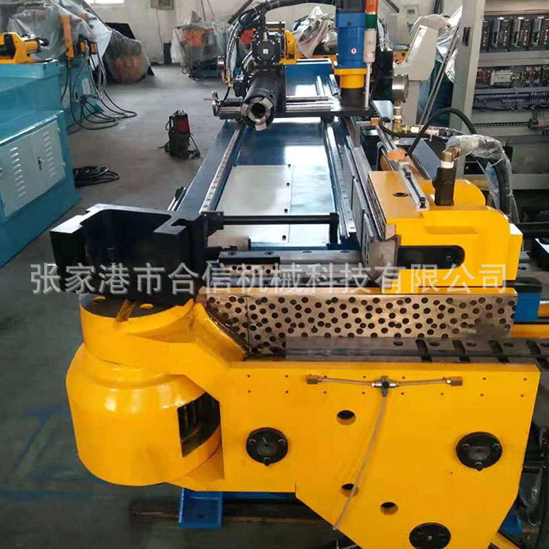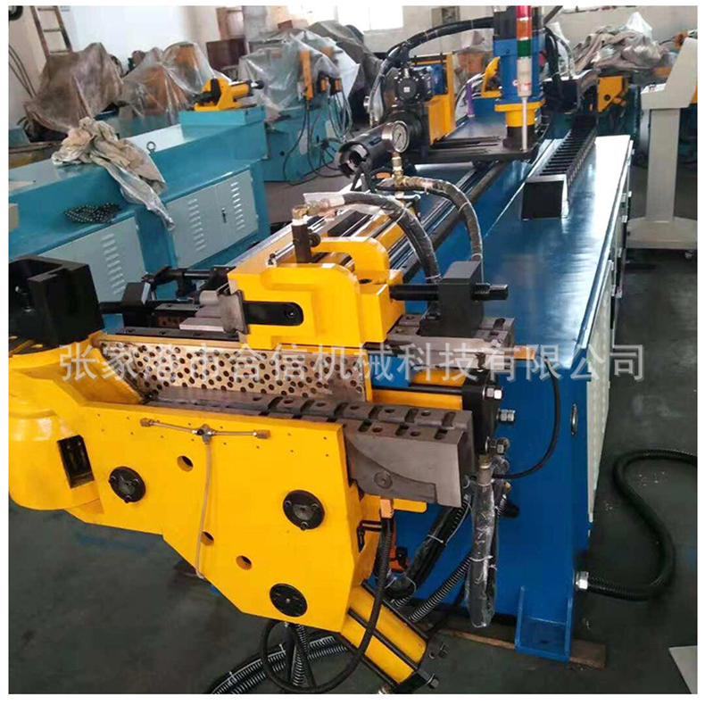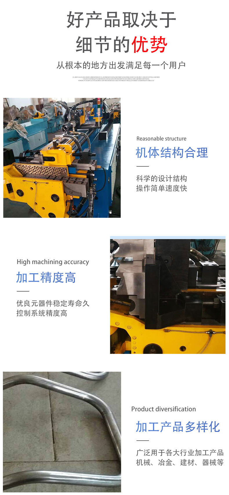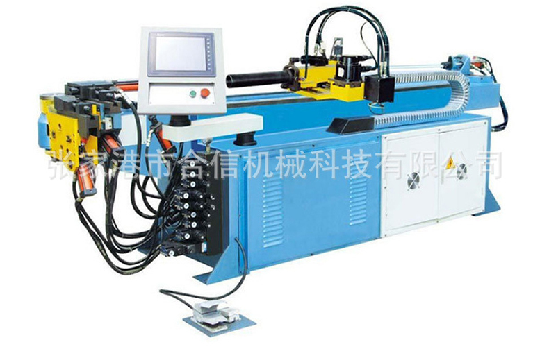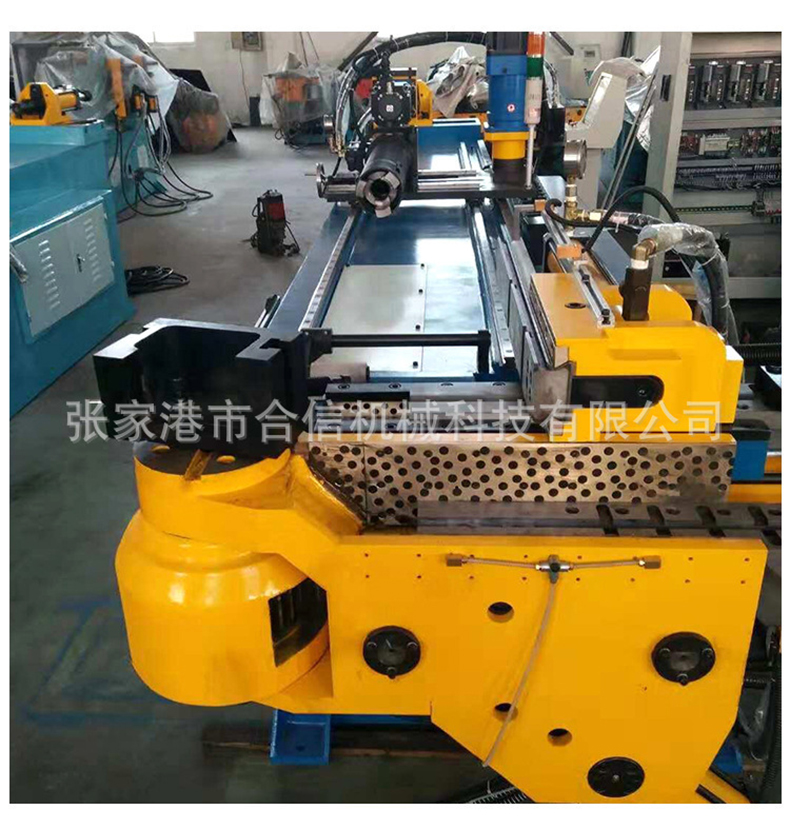 38CNC全自动数控液压弯管机 38CNC全自动数控液压弯管机 全自动数控弯管机性能特点: 1、本机采用PLC控制,加数控模块,人机界面触摸屏操作,程式设定简便容易。 2、送料为伺服控制,转角为伺服控制,弯管可选伺服驱动或液压驱动 3、本... 咨询电话:13862224371 产品详情 全自动数控弯管机性能特点: 1、本机采用PLC控制,加数控模块,人机界面触摸屏操作,程式设定简便容易。 2、送料为伺服控制,转角为伺服控制,弯管可选伺服驱动或液压驱动 3、本弯管设备为自动化数控设备,弯管一次成型。 4、可自由选择、手动、半自动、全自动模式。 5、程序设定,每档可设定20个自动送料(可增加)、自动转角 及20个弯管角度(可增加),可记忆存储200组档案。 6、在加工过程中移动式控制器的触摸屏上显示转角、弯管的加工现在值,还可设定单步执行动作、半循环操作、全循环操作。可自由开启切管功能 7、具有自动检测错误及故障的功能,当出现任何非正常动作或 有任何危险存在时机器会立即停机发出异警,显示故障原因,帮 助操作者排除故障。